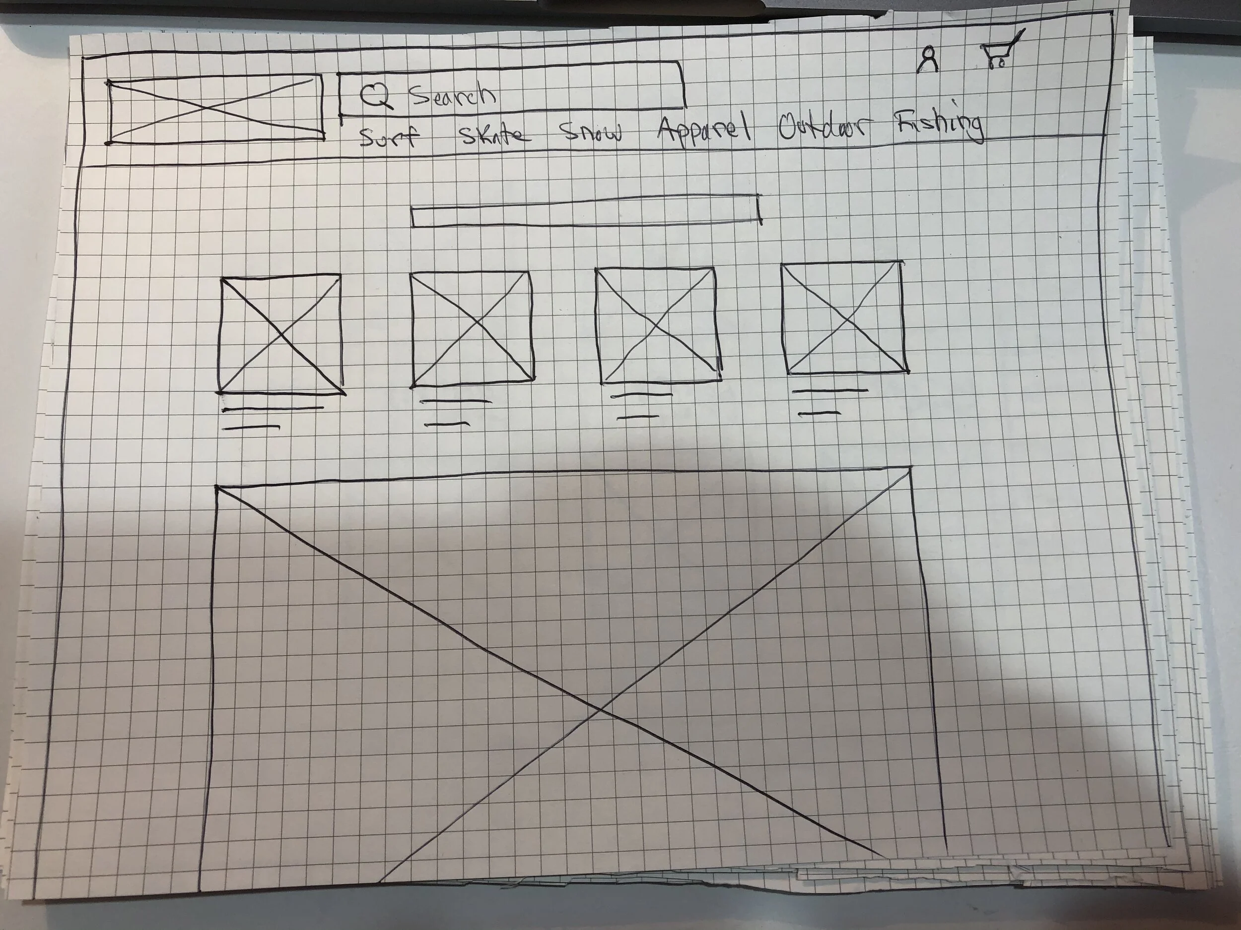 A Mid-Fidelity design for the new home page. A cleaner, less cluttered look, focused on simplicity and finding products.